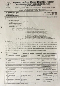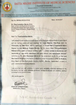 - 2 Yrs as Lecture in Department of Oral & Maxillofacial Surgery, Government Dental College, Nagpur.