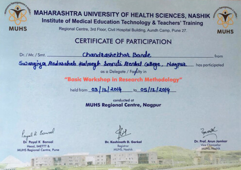- CME conducted by Wockhardt Hospitals, Nagpur on “Recent Advances in Maxillofacial Surgery” in 2011.